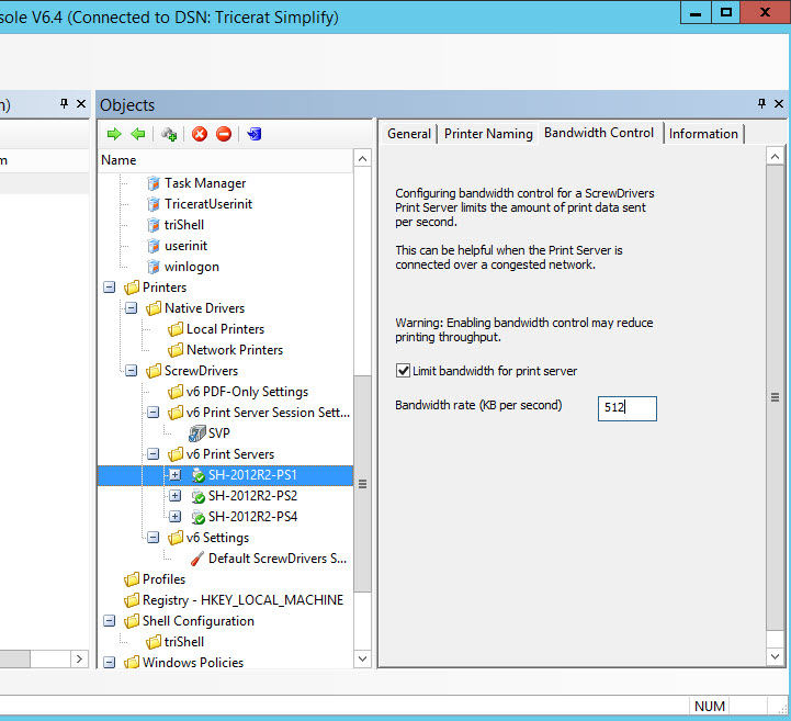 For version 6.4, Tricerat is introducing a new feature called ScrewDrivers Print Server Bandwidth Control.
